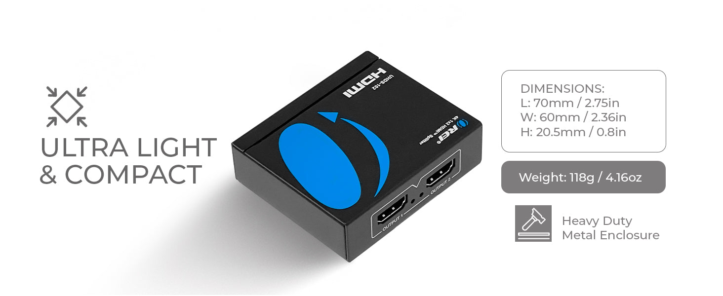 The UHDS-102 HDMI splitter is fully HDCP 2.3 compliant, ensuring it works flawlessly with the latest content protection standards. This makes it compatible with a wide range of modern AV equipment, from laptop screen splitter setups to dual monitor splitter configurations. Whether you're using a 4K splitter or a splitter for monitors, you can trust the UHDS-102 to deliver high-quality video and audio with no interruptions or issues.