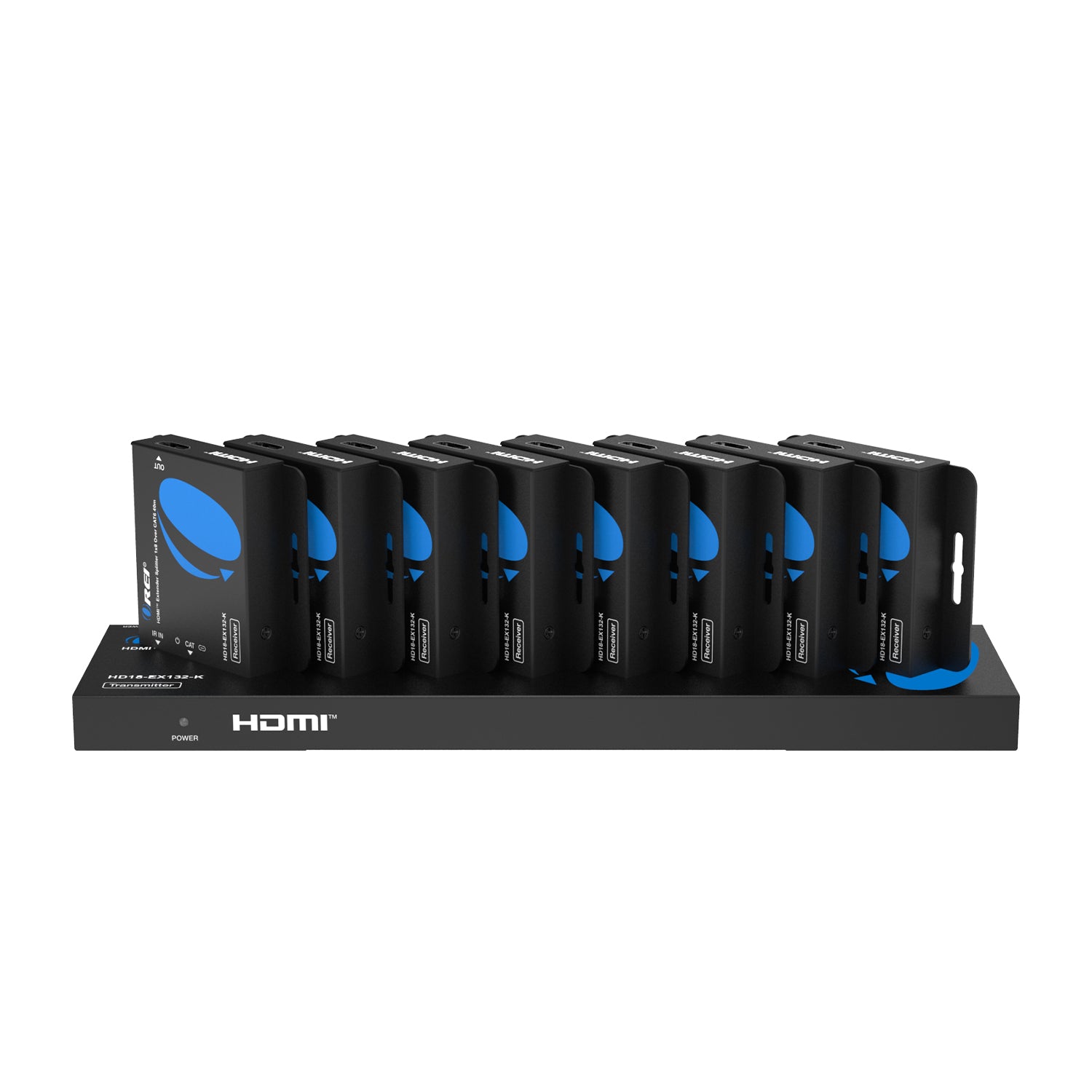 The HD18-EX132-K is a professional-grade HDMI extender splitter that transmits a single HDMI source to up to eight displays over CAT6/7 cables. Supporting 4K@30Hz up to 132 feet and 1080p@60Hz up to 230 feet, this HDMI over CAT6 4K system is perfect for control centers, conference halls, and commercial displays requiring reliable long-distance video distribution.