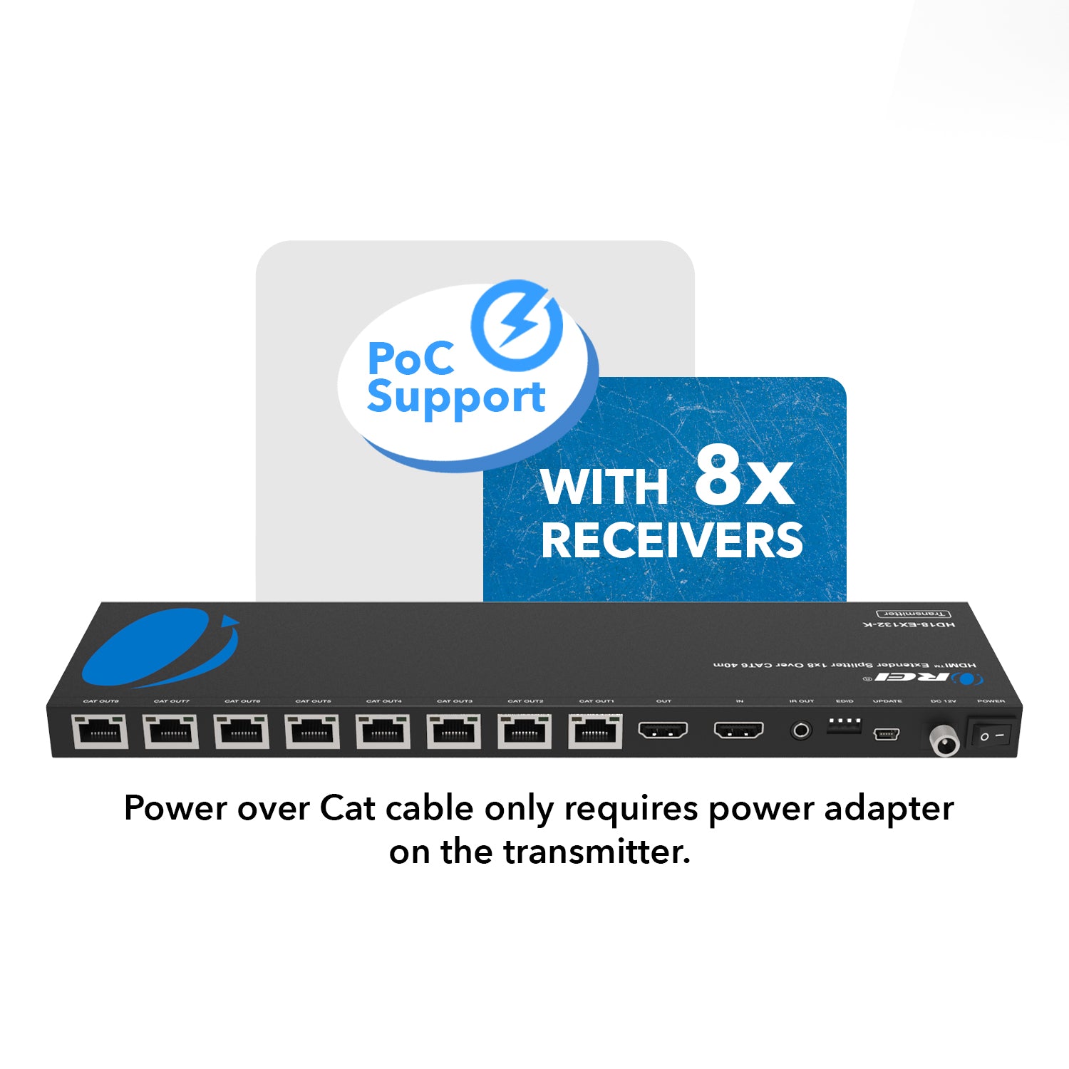 4K@30Hz 1x8 HDMI™ Extender Splitter (Loop) - 132ft (cat6) (HD18-EX132-K)