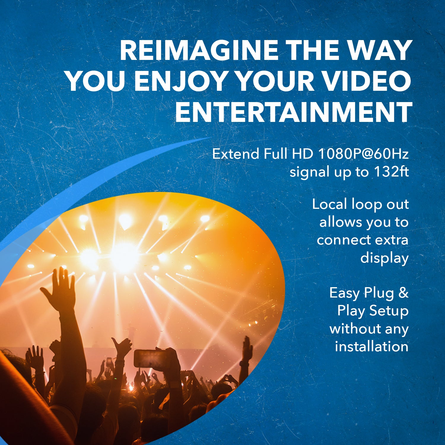 - Extends Signal up to 132 Feet – Transmits up to 132 ft at 4K@30Hz and 230 ft at 1080p@60Hz.