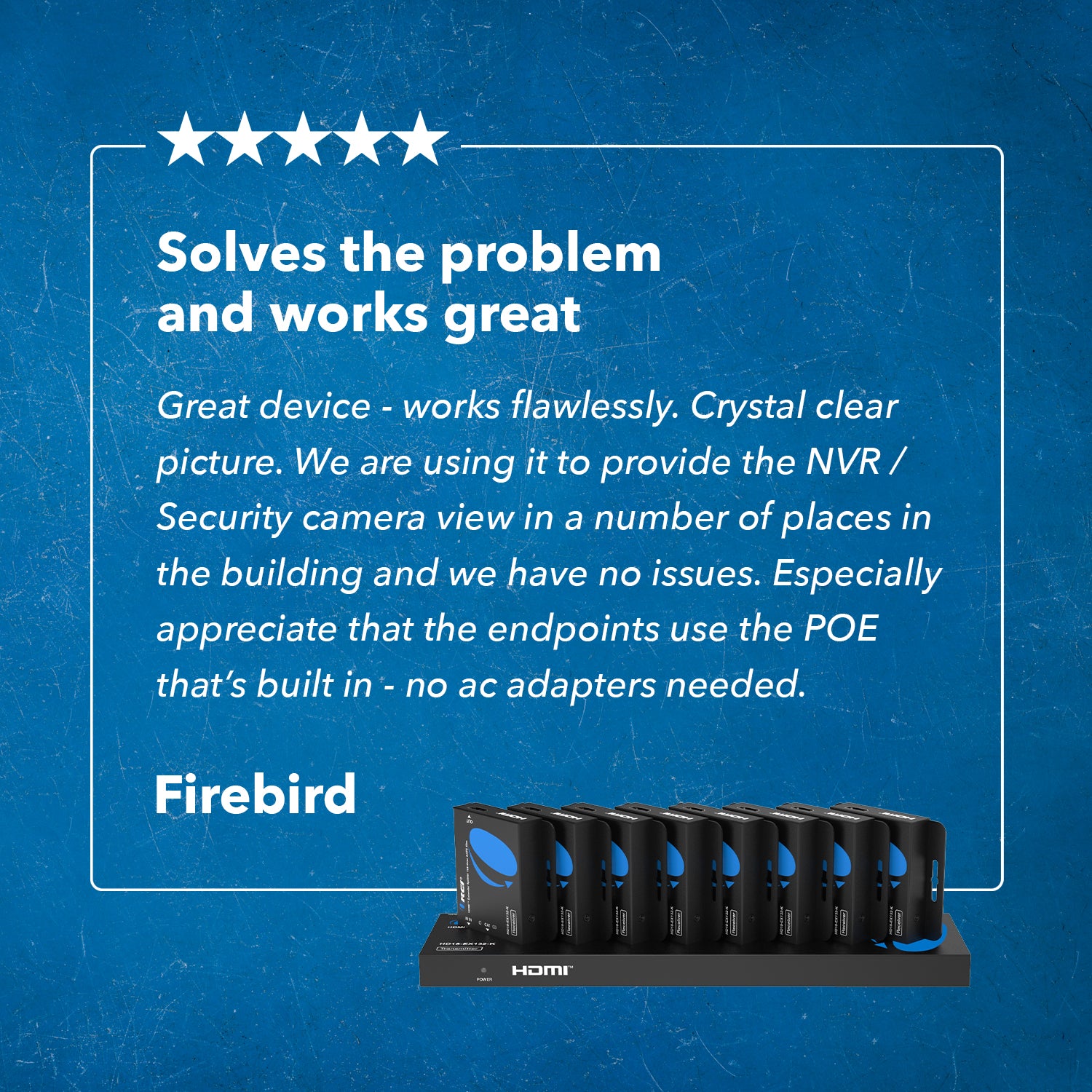 - HDMI Loop Output – Lets you connect a local display directly at the transmitter.
