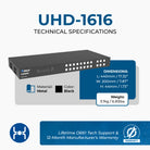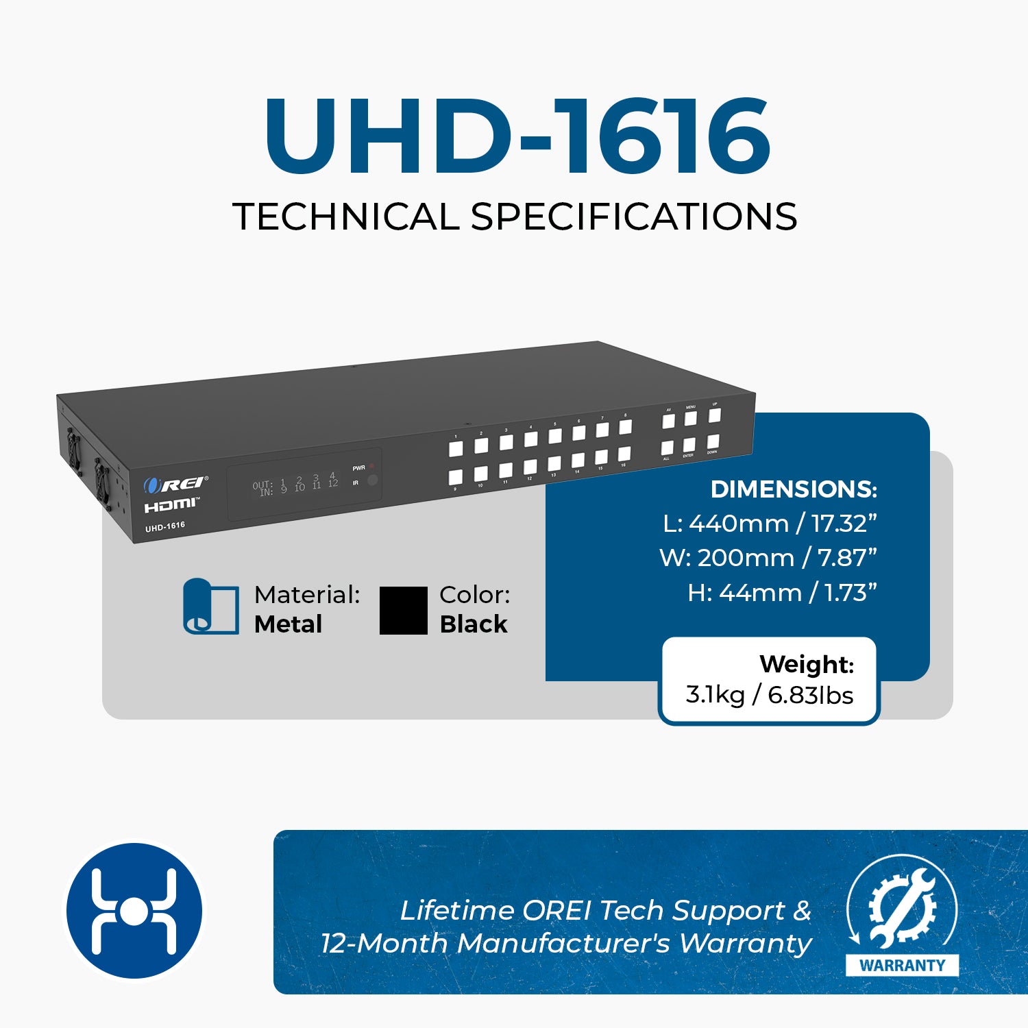 4K@60Hz 16x16 HDMI™ Matrix (Audio Extract) (UHD-1616)