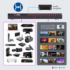 Audio Extraction – Extracts audio via 16 coaxial ports from HDMI™ outputs for external audio systems.