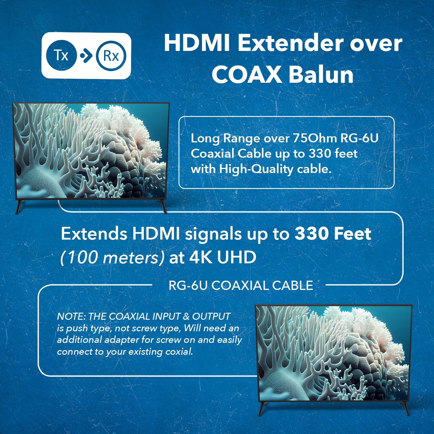 4K@60Hz Extension up to 330 ft – Transmits ultra-high-definition video over a single RG-6 coaxial cable with zero signal loss.