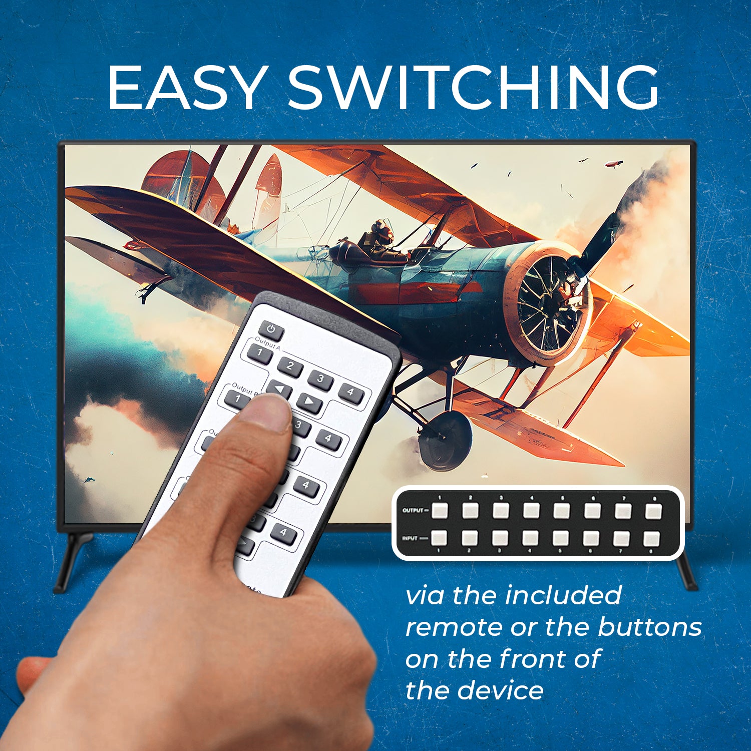 - 8 in 8 out HDMI Matrix Switch with Audio Extractor, HDR & downscaling