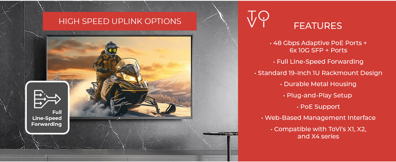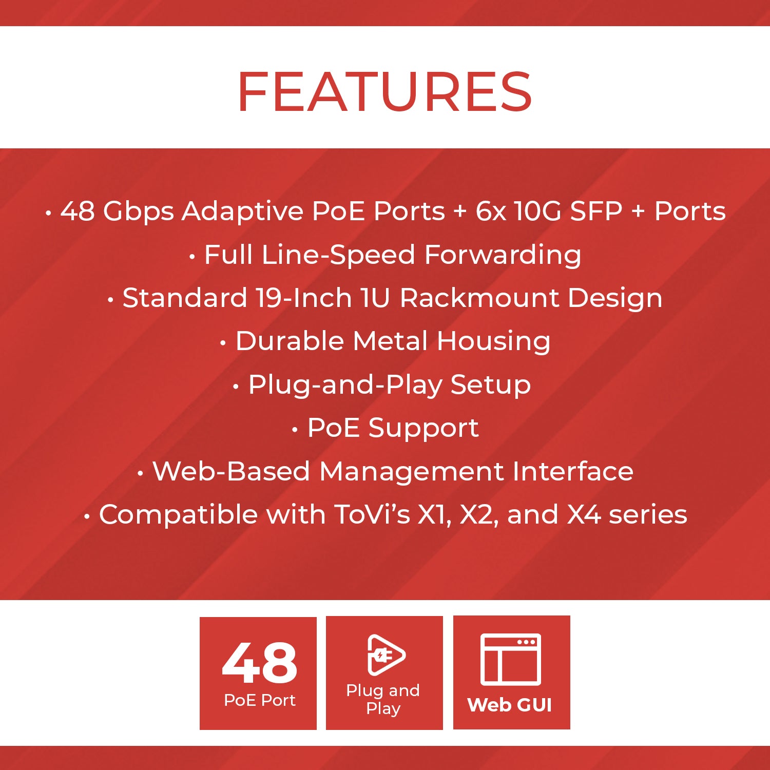 ToVi 48-Port Gigabit PoE Switch w/ 6×10G SFP+ Uplink (1U Rackmount)