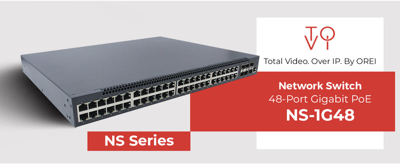 A built-in web-based management interface allows intuitive control and configuration of network settings. PoE support simplifies the installation of IP cameras, wireless access points, and AV equipment, including the ToVi range of products by OREI. The NS-1G48 is fully compatible with and purpose-built for seamless integration with ToVi’s X1, X2, and X4 series.