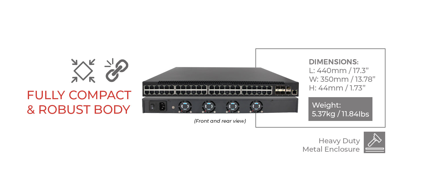 Engineered for maximum efficiency, the NS-1G48 guarantees full line-speed forwarding on all ports, maintaining consistent data transfer even under heavy traffic loads. This ensures smooth, uninterrupted performance across your entire network, supporting mission-critical operations that always demand stability and reliability.
