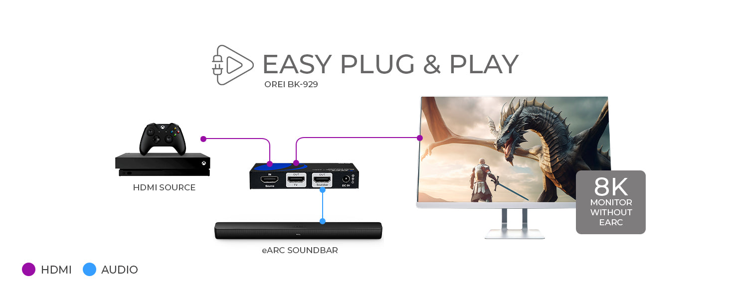OREI 8K Audio Extractor with ARC/eARC output for Dolby Atmos and DTS: X