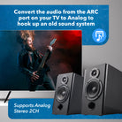 The DA26 HDMI ARC to Analog Audio Converter bridges modern TVs and legacy audio gear. It extracts digital audio from ARC-enabled HDTVs and converts it into clean, 2-channel analog stereo—perfect for older amplifiers, stereo systems, or headphones that lack HDMI or ARC support.