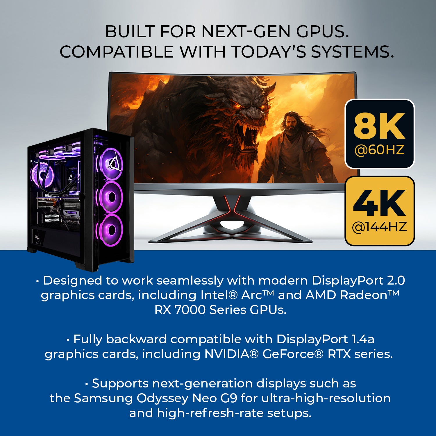 - 8K@60Hz & 4K@144Hz Ultra-High Resolution