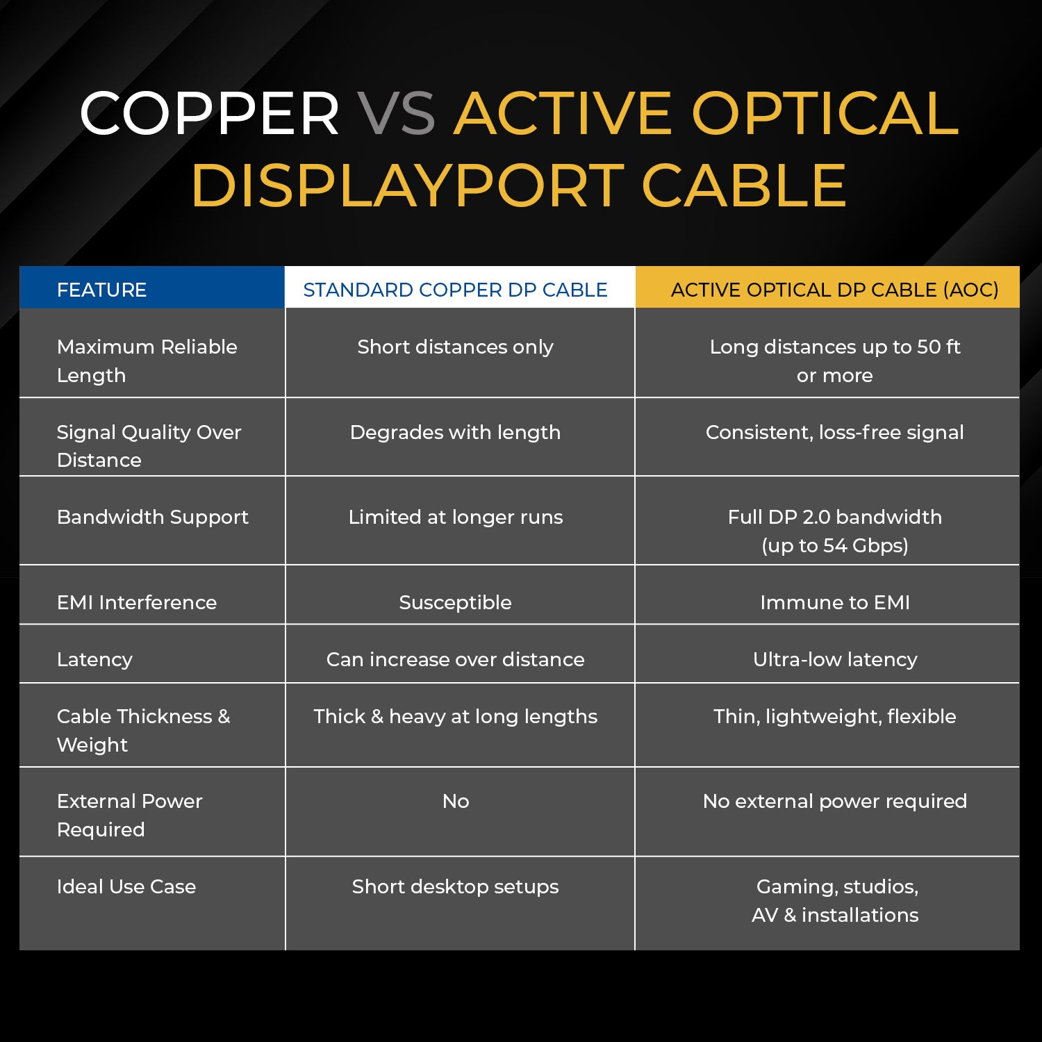- EMI & RF Immunity – Optical core eliminates interference, ideal for gaming rigs, workstations, and AV environments.