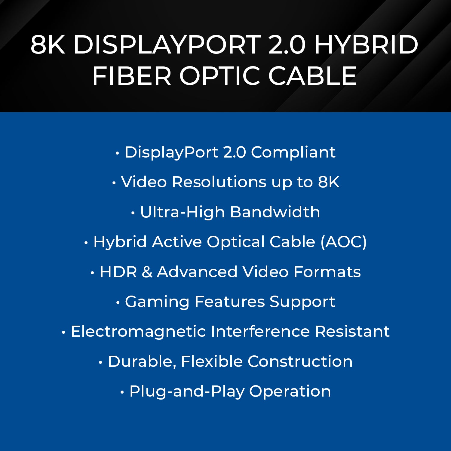15ft 8K DisplayPort 2.0 Hybrid Fiber Optic Cable (AOC-DP8K-15)