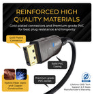 Fully compliant with DisplayPort 2.0 UHBR13.5, this cable supports 8K@60/30Hz, 4K@144Hz, and advanced HDR formats including HDR10+ and Dolby Vision. With EMI-free operation, gaming features like VRR and ALLM, and a durable gold-plated PVC design, it’s a reliable solution for high-performance display connectivity