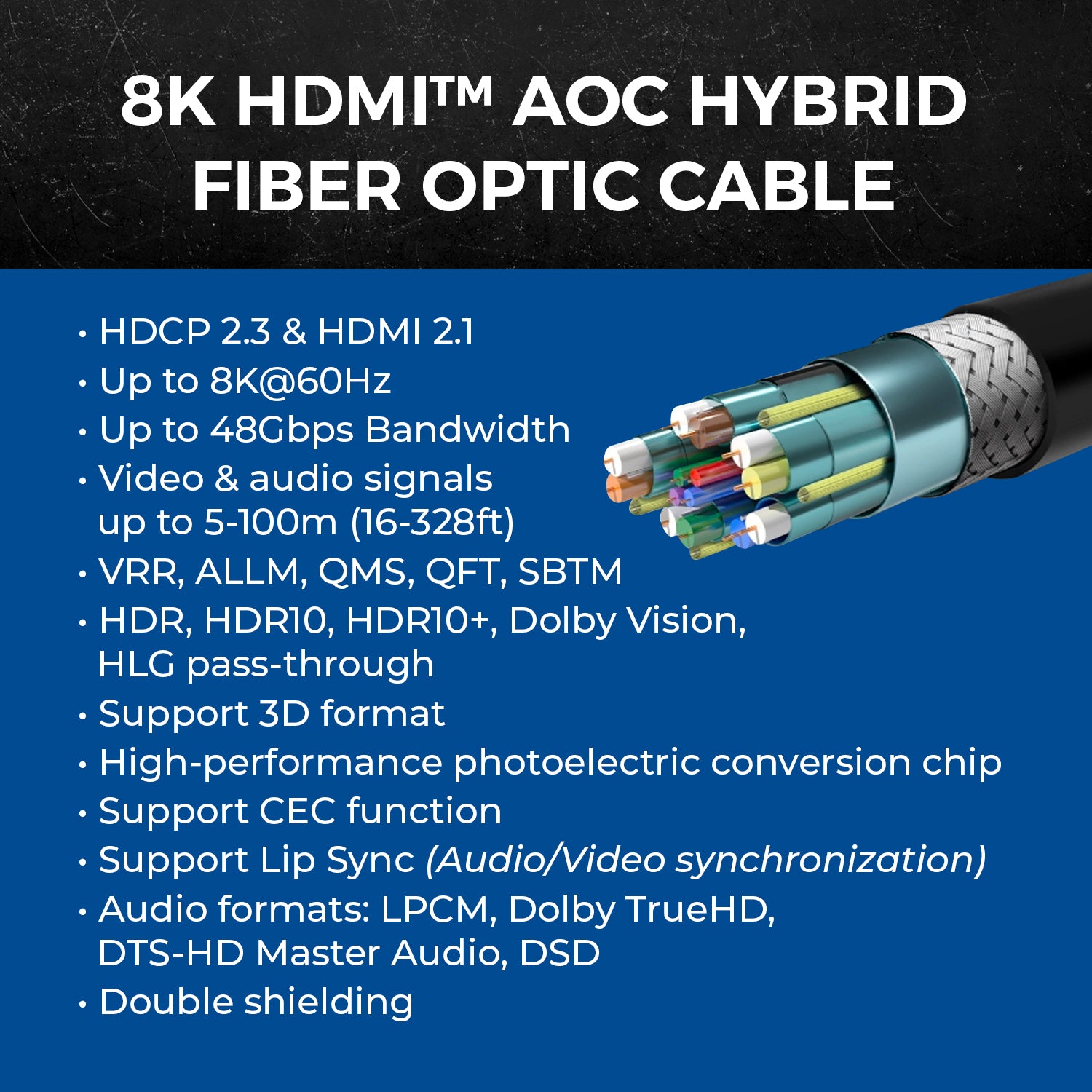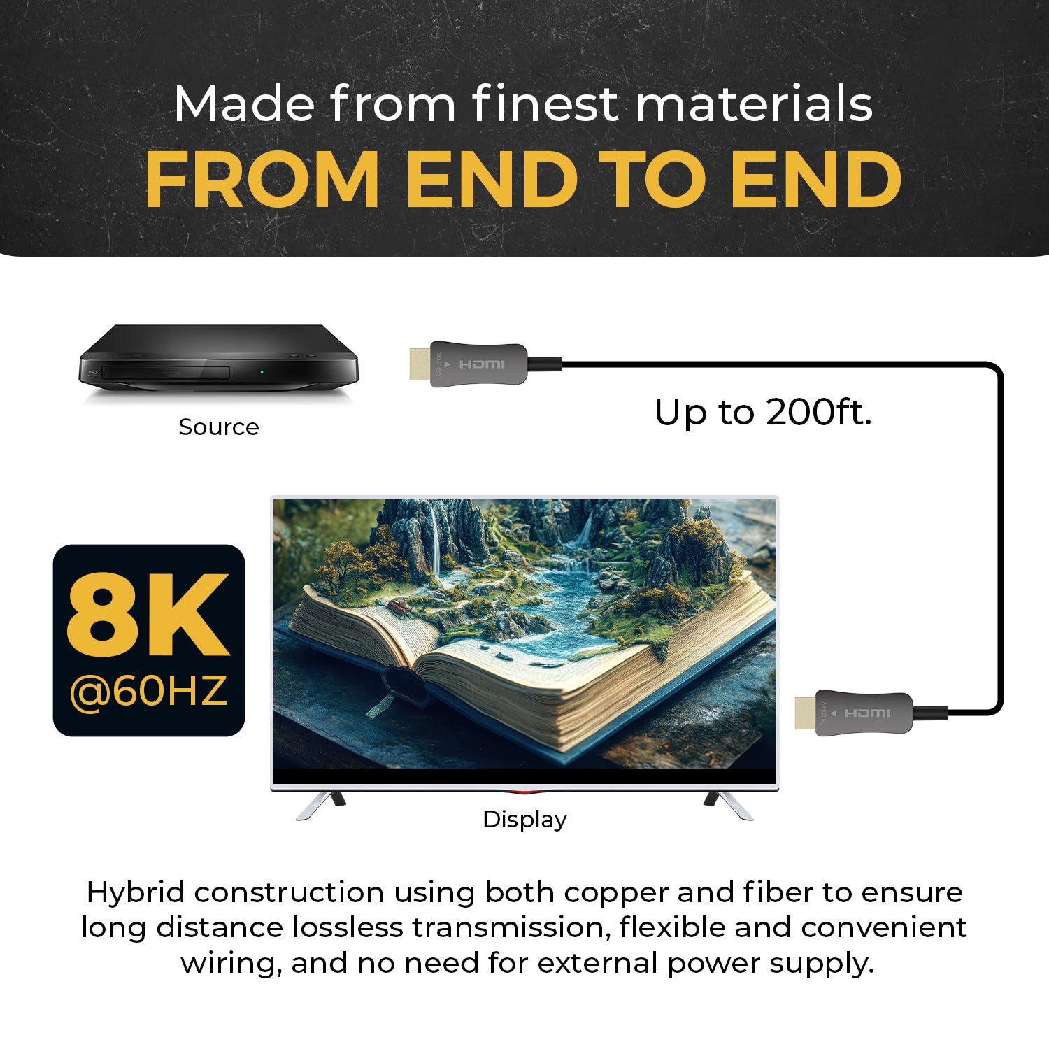 200ft HDMI™ AOC Hybrid Fiber Optic Cable UHD 8K60 (AOC-8K-200)