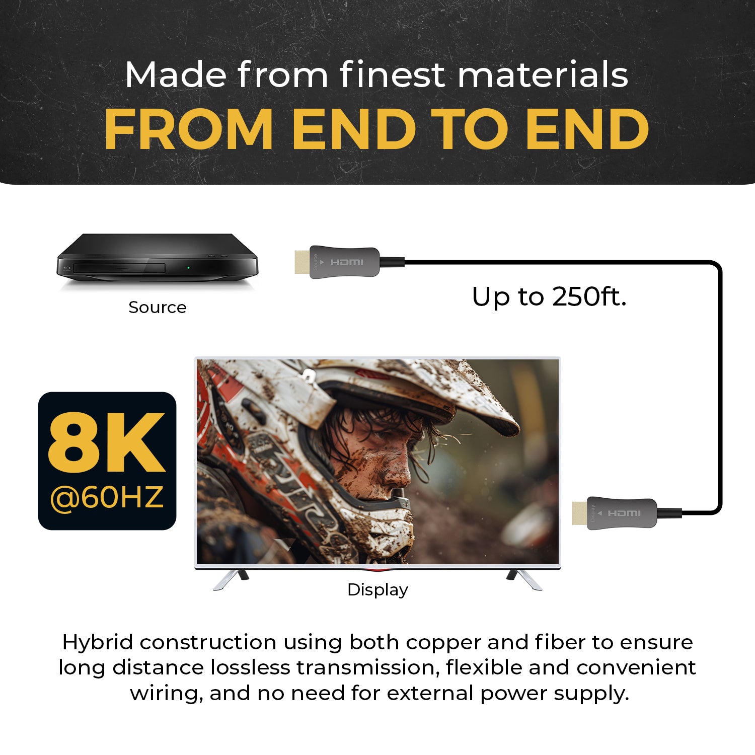 250ft HDMI™ AOC Hybrid Fiber Optic Cable UHD 8K60 (AOC-8K-250)