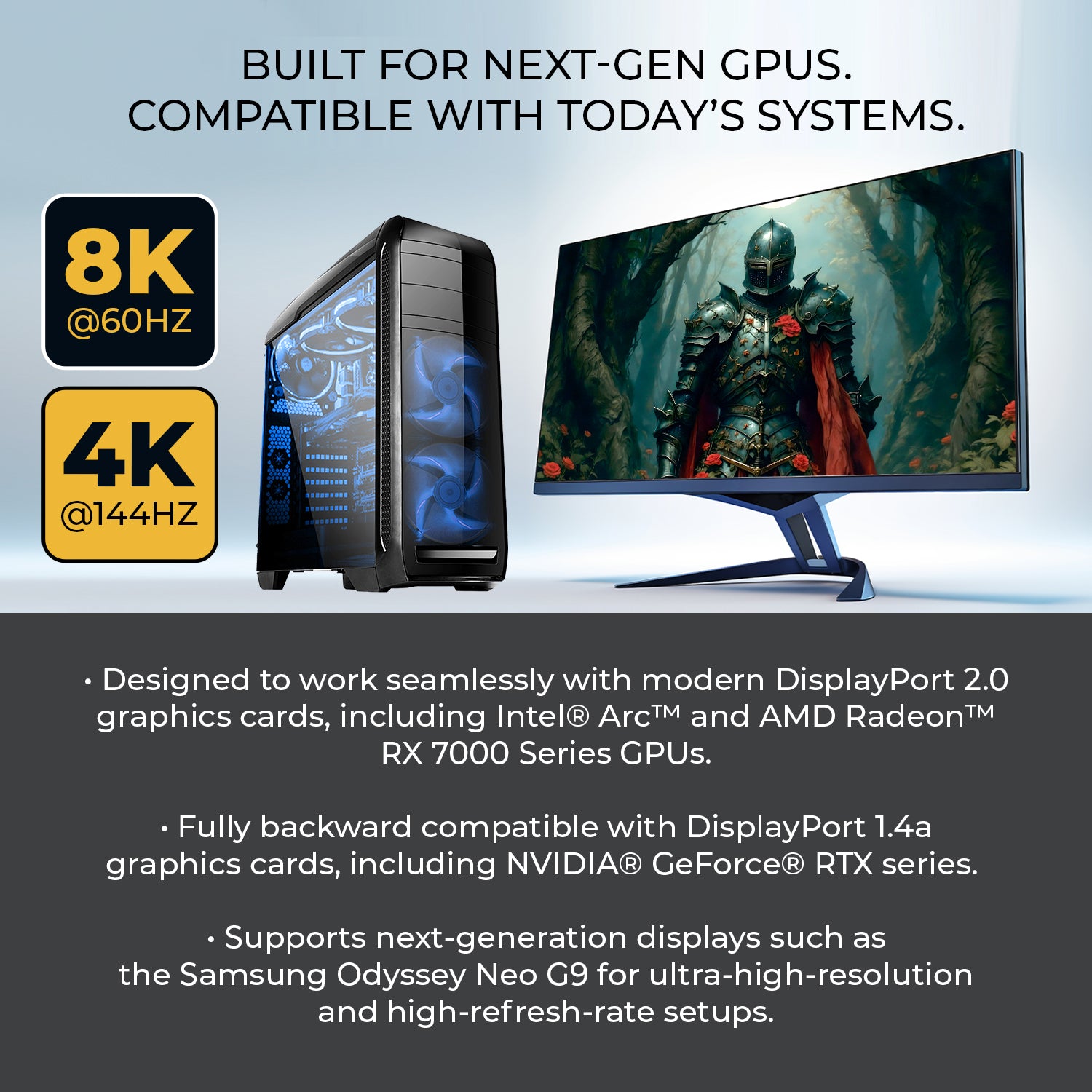 - 54Gbps DisplayPort 2.0 Bandwidth