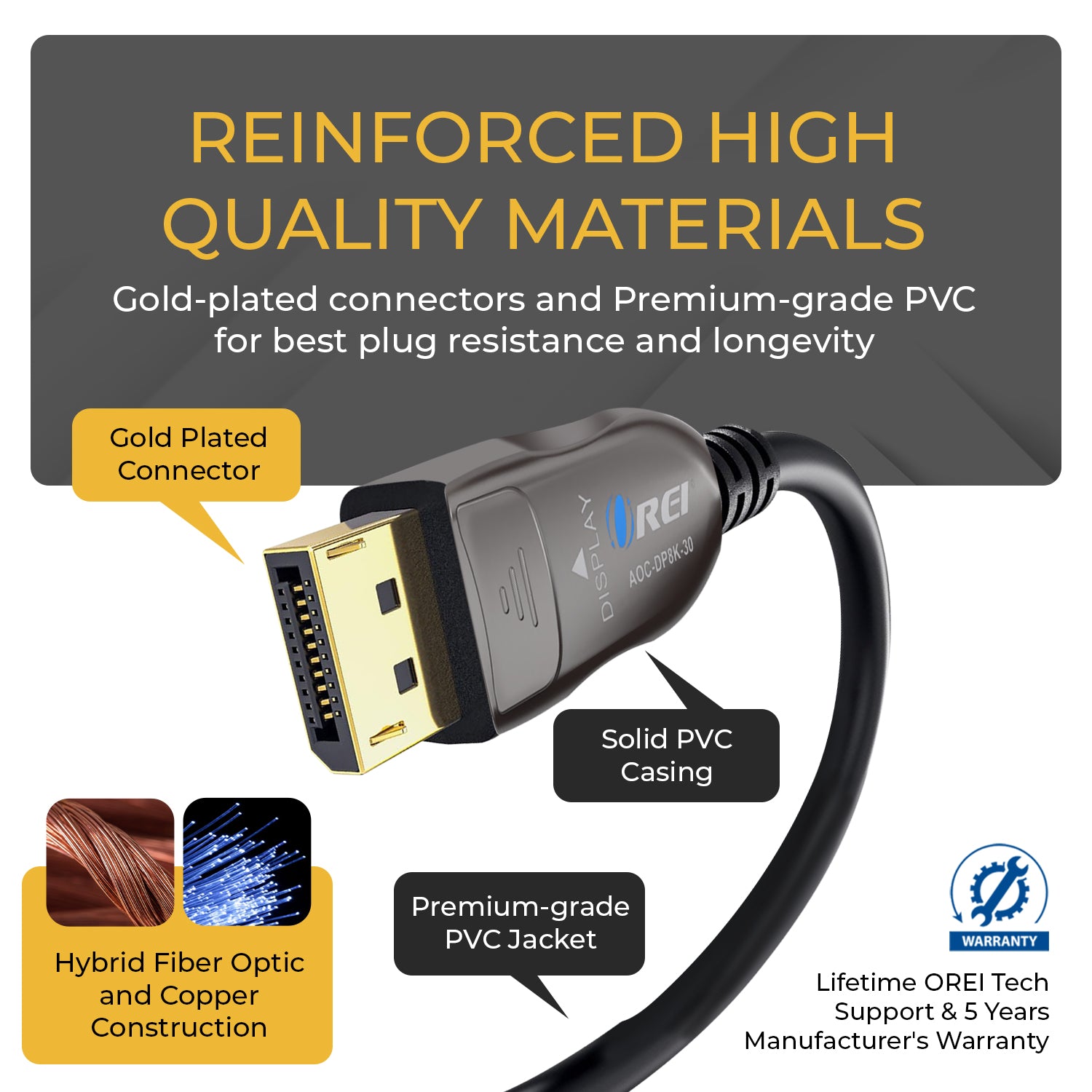 - Interference-Free Signal Path – Fiber core eliminates EMI and RF interference for clean, reliable performance