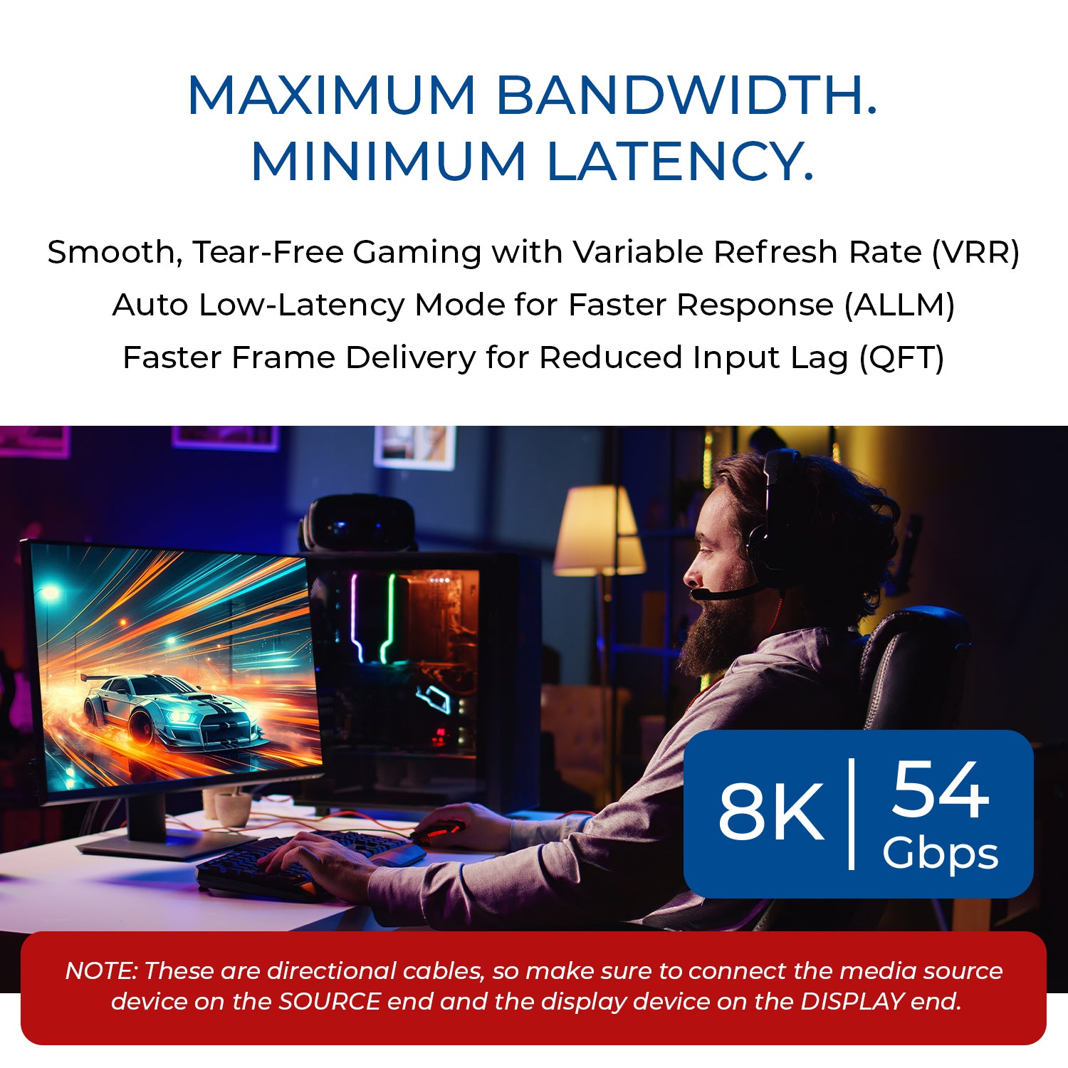 - True 8K Clarity Over Distance – Delivers uncompressed 8K@60/30Hz and 4K@144Hz video with full 54Gbps bandwidth across 30ft