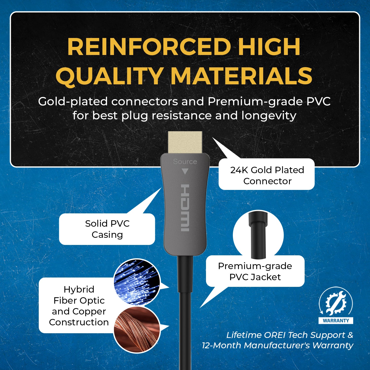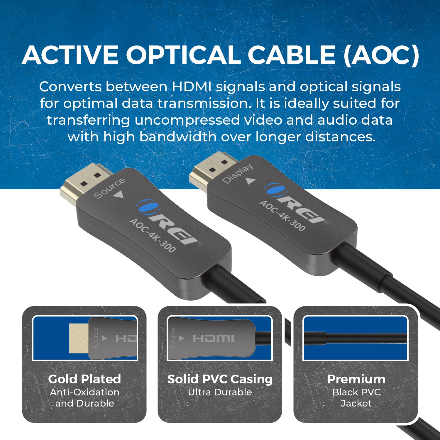 OREI 300ft Fiber Optic HDMI 2.0 Cable 4K 60Hz HDR High Speed (AOC-4K-300)