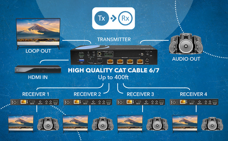 Distribute 1 HDMI Source to 4 Displays over Long Distances