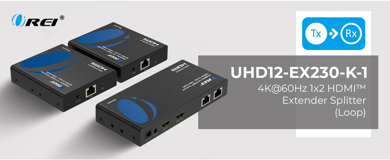 OREI UHD12-EX230-K : 4K@60HZ 1X2 HDMI™ EXTENDER SPLITTER (LOOP)