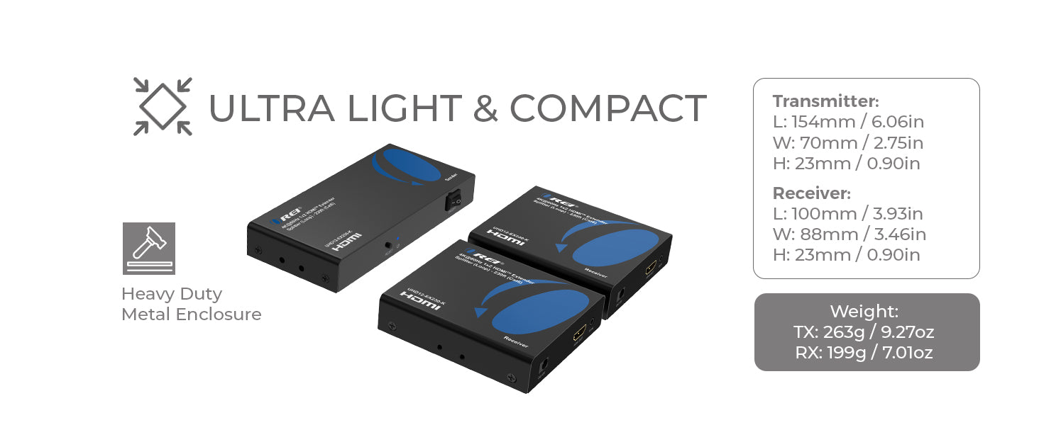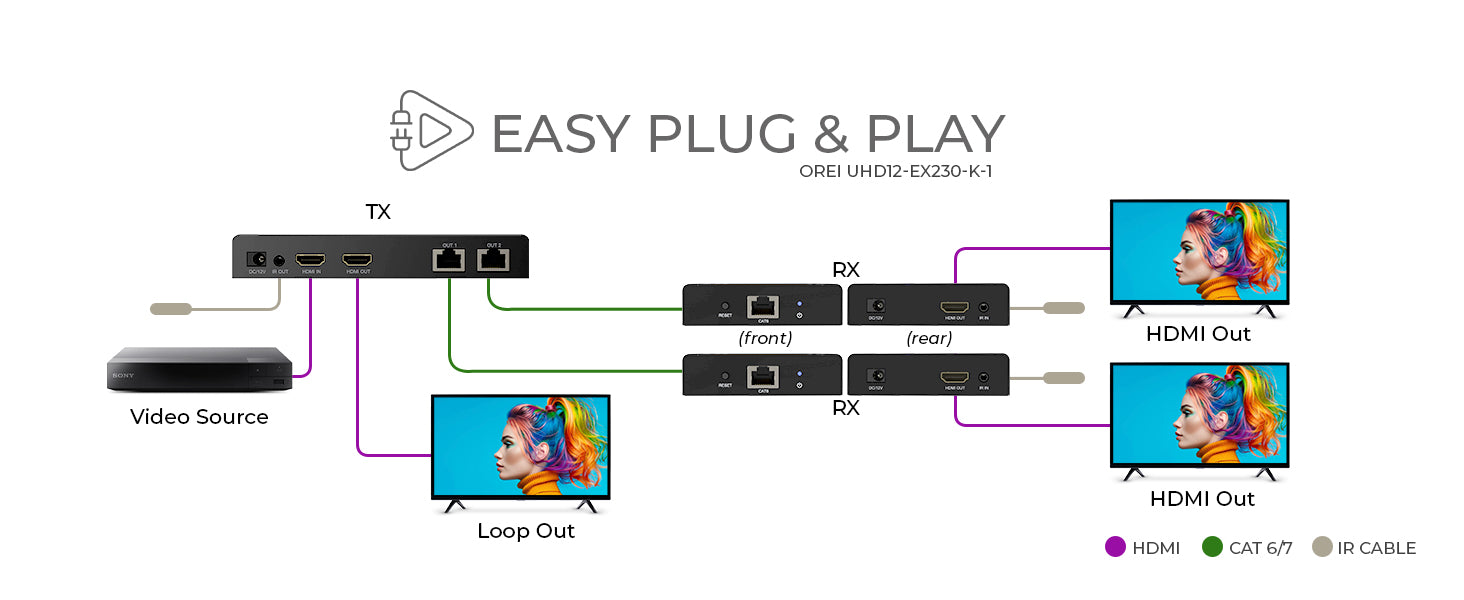 - HDMI Loop Output on Transmitter – Connect a local display near the source for monitoring.