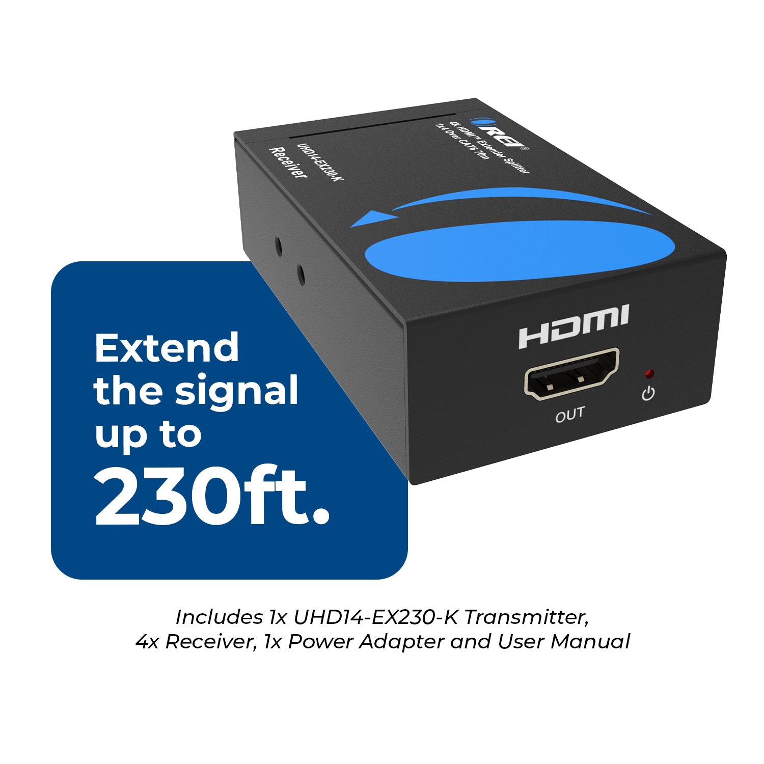 Designed for flexibility and fast deployment, this splitter HDMI extender features a compact, discreet build. No drivers or complex configurations are needed—just connect and go. Whether you're building a 1x4 HDMI splitter over CAT6 network or extending 4K content across multiple screens, the UHD14-EX230-K is a reliable and scalable choice.