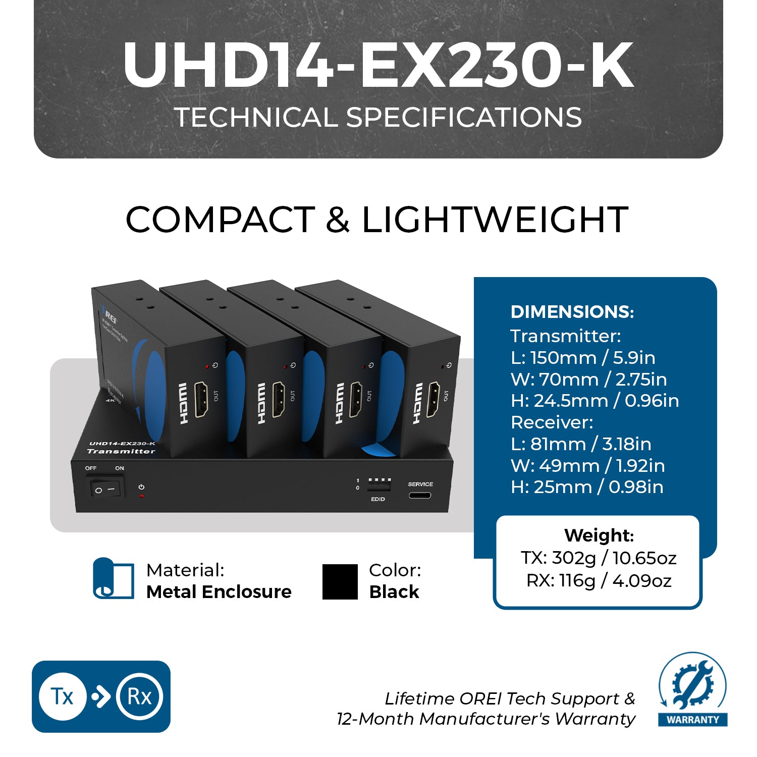 Perfect for meeting rooms, educational settings, retail displays, or home entertainment systems, the UHD14-EX230-K offers a reliable and efficient way to extend HDMI signals over long distances.
