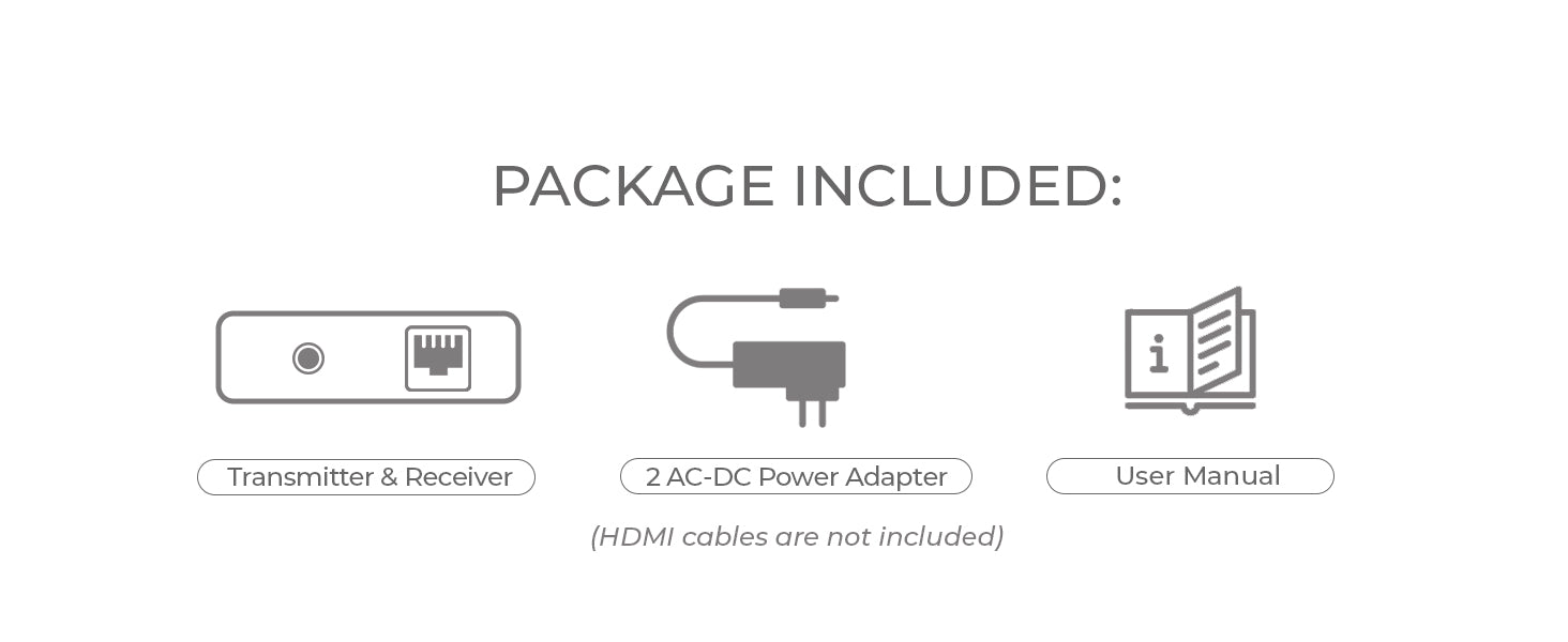 | CAT5e, CAT6, CAT7: | We recommend you to use shielded CAT6 cables & High-Quality HDMI Cables for optimum performance |