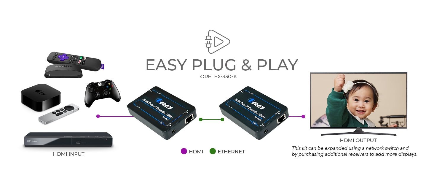 The EX-330-K is a high-performance HDMI over IP extender that transmits 1080p@60Hz video up to 492 feet (150 meters) over a single CAT5e or CAT6 cable. It’s the ideal solution for reliable long-distance AV signal transmission, whether you're setting up HDMI through Ethernet in commercial, educational, or residential environments.