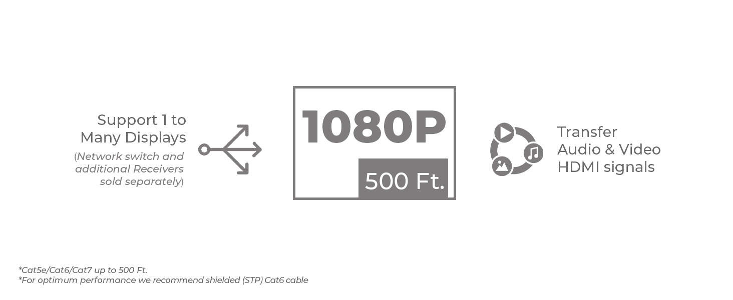 Long-Distance Transmission – Extends HDMI signals up to 492 ft (150 m) over a single CAT5e/6 cable.