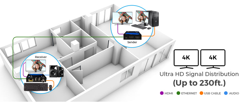 4K@60hz HDMI™ Extender (KVM) - 230ft (cat6)-UHD-EX230-KVM