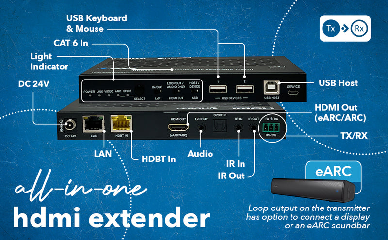 ARC/eARC Audio Extraction, Bi-directional KVM IR, PoC & RS-232