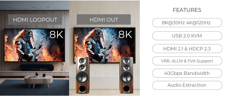Enjoy full compatibility with premium video standards such as HDR10+, Dolby Vision, and HLG pass-through for incredible color accuracy and contrast. With USB 2.0 KVM functionality (up to 350Mbps), users can remotely control connected devices like PCs or media servers using a keyboard and mouse—perfect for both entertainment and control center applications.
