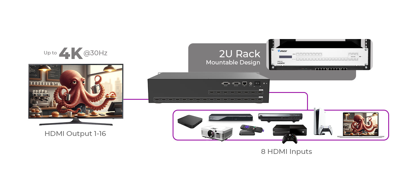 OREI HDS-816: 4K@30HZ 8X16 HDMI™ MATRIX