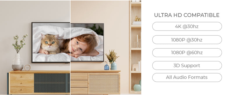 - Resolutions up to 4K@30Hz and 1080p@60Hz – Delivers high-definition video for crystal-clear image quality.