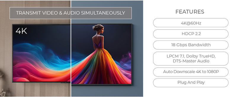 Enjoy premium sound with full support for LPCM 7.1, Dolby TrueHD, and DTS-HD Master Audio. Whether you're using it for an HDMI splitter for dual monitors or multiple TVs, this splitter ensures that your video comes with equally rich, immersive audio, perfect for home theaters and commercial setups. It’s the ideal choice for anyone who values both superior sound and video.