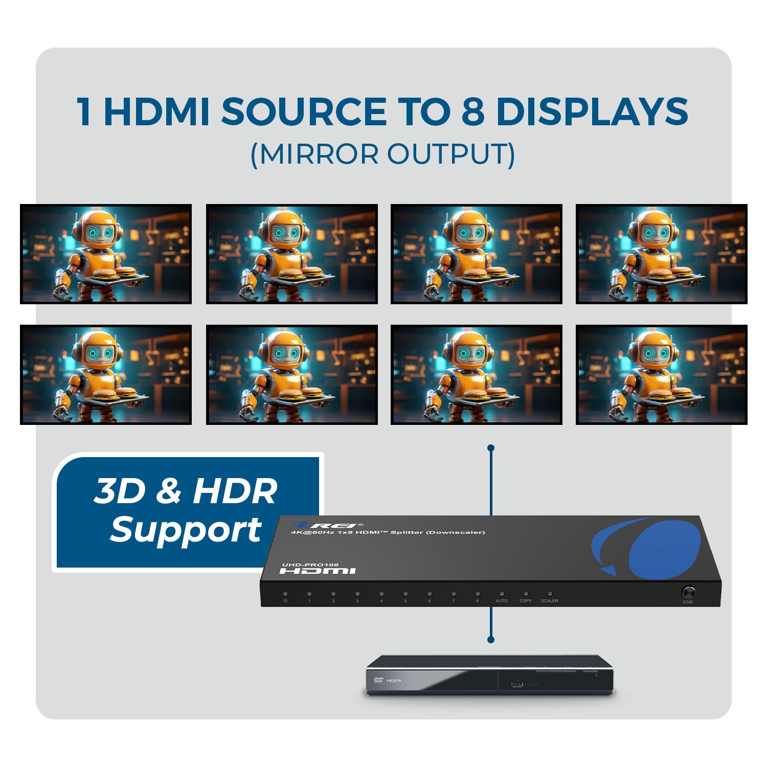 OREI HDMI Splitters are the perfect solution when you need to connect one source of digital high-definition video to multiple displays at the same time.
