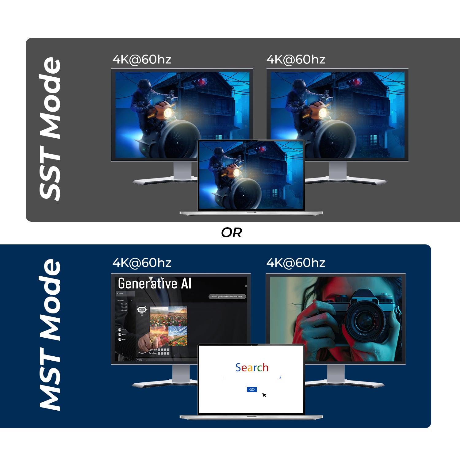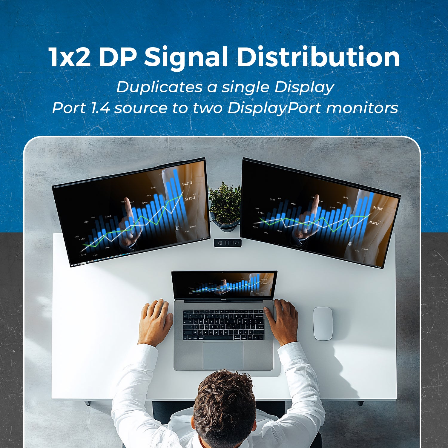 - 1 in 2 out – connect one source to two displays