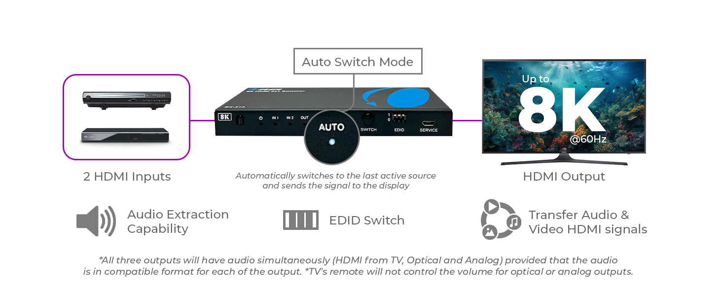 8K 2-port HDMI™ Switch (Audio Extract)-BK-21A