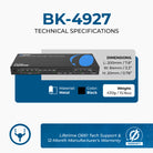 With both automatic and manual input switching, CEC control, and a compact build, the BK-4927 is a versatile and reliable centrepiece for any high-end AV setup.