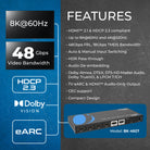 - 48Gbps FRL and 18Gbps TMDS Bandwidth – Enables smooth transmission of high-bitrate video signals.