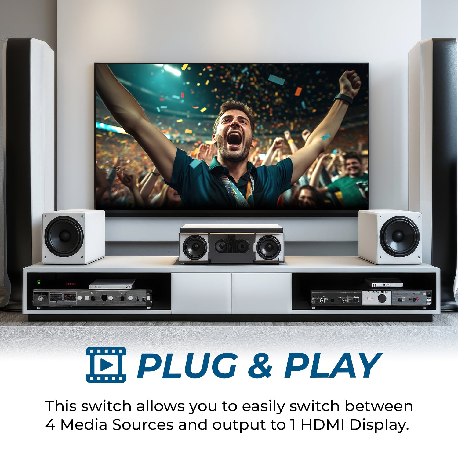 Our HDMI switches support all HDMI-enabled equipment, such as DVD players, satellite set-top boxes, and all HDMI displays. If this sounds like something you need, then the HDMI Switcher is for you!