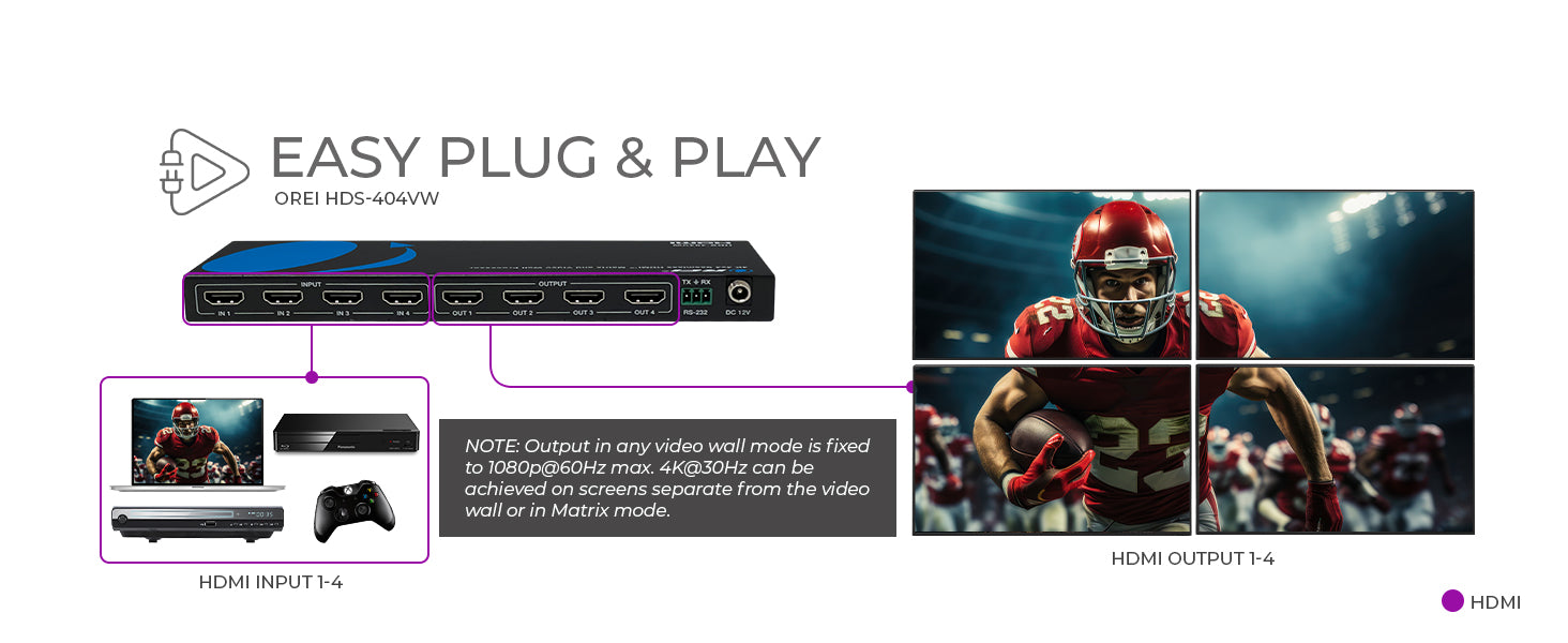 HDS-404VW: 4K@30Hz 4x4 Seamless Matrix with Video Wall