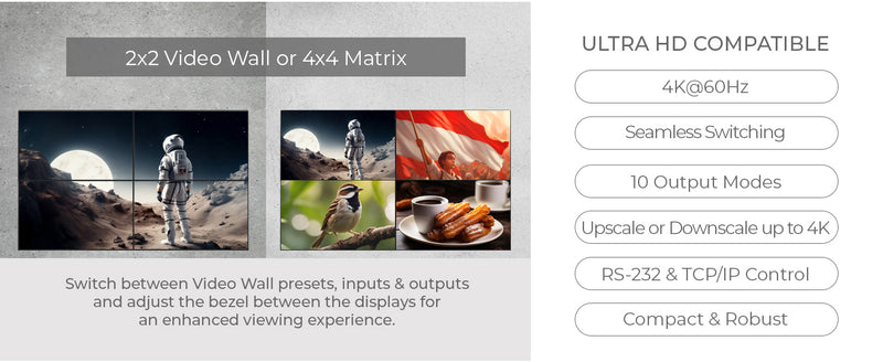 4K@60hz 4x4 HDMI™ Matrix w/ Video Wall (Seamless)-UHDS-404VW