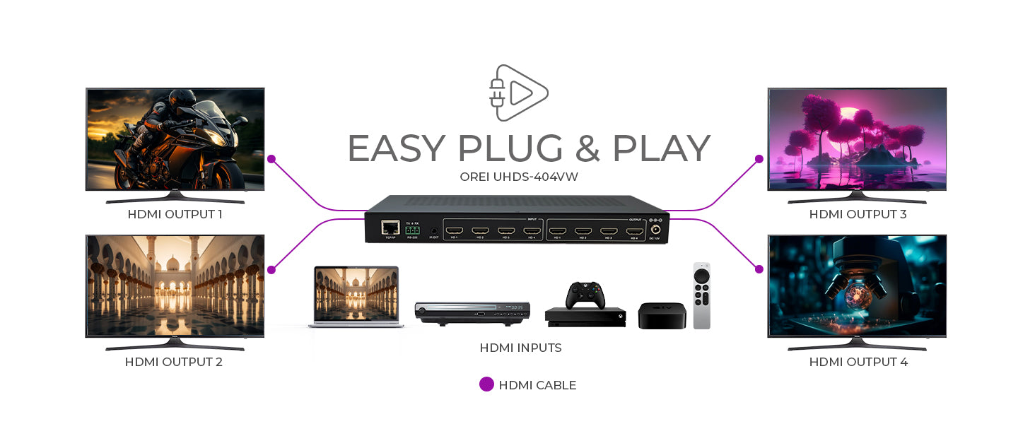 Whether deployed in a command center, control room, digital signage network, or residential theater, the UHDS-404VW offers exceptional versatility and performance in one compact system.