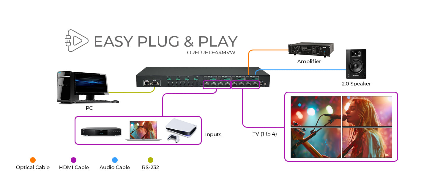 OREI UHD-44MVW: 4K@60Hz HDMI Matrix, Multiviewer, Video wall Controller with Audio Extraction, CEC and IR Matrix