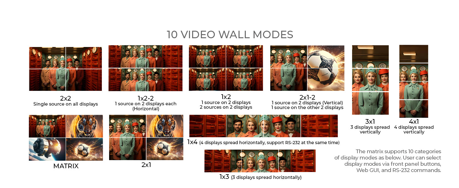 12 Multiview Modes & 9 Video Wall Layouts – Flexible configurations to meet diverse viewing needs.