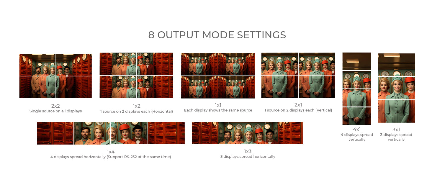Experience instant source switching with no screen blackout. Built-in video wall support lets you tile multiple displays into a single large canvas—ideal for digital signage, retail displays, and large-scale presentations where timing and precision matter.